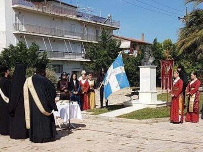 Εκεί, τελέσθηκε Ιερό Τρισάγιο, έγινε κατάθεση στεφάνων, τηρήθηκε ενός λεπτού σιγή, ενώ η Μπάντα του Δήμου Πατρέων παιάνισε τον Εθνικό Ύμνο.