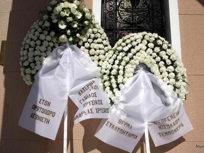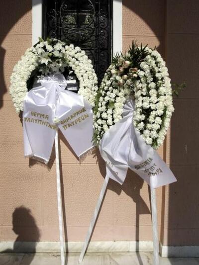 Ανάμεσα στα στεφάνια ήταν κι αυτό του Δημάρχου Πατρέων Κώστα Πελετίδη καθώς και της αναπληρώτριας διοικήτριας του Καραμανδανείου Νοσοκομείου παίδων Πατρών Κατερίνας Γατοπούλου και των παιδιών της.