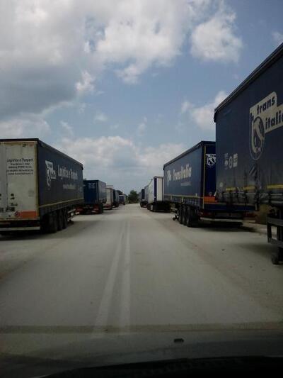 Στην πράξη όμως, ο χώρος δεν επαρκεί και όπως διακρίνεται και στις φωτογραφίες δεκάδες νταλίκες καταλαμβάνουν τους δρόμους σε μόνιμη βάση.