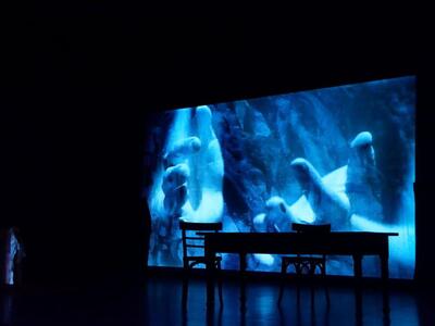 Στην παράσταση, πέρα από τα πρόσωπα που πρωταγωνιστούν, την δική τους θέση έχουν τα πραγματικά πρόσωπα του νησιού, μέσα από εικόνες που προβάλλονται ενώ ακούγονται αυθεντικά τραγούδια της Ιθάκης.