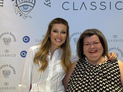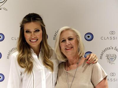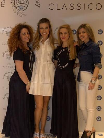 Δεκάδες κομψές φίλες του γυναικείου Classico συνωστίστηκαν Παρασκευή βράδυ στο γνωστό κατάστημα υποδημάτων για να γνωρίσουν από κοντά και να φωτογραφηθούν με την πραγματικά πολύ εντυπωσιακή, λαμπερή και πανύψηλη Μαριέτα Χρουσαλά, που αποδείχθηκε ένα κορίτσι πολύ εγκάρδιο και μονίμως χαμογελαστό. Η πρώην Σταρ Ελλάς, μοντέλο και τηλεπαρουσιάστρια, ήρθε στην Πάτρα για να παρουσιάσει την καλοκαιρινή σειρά αρχαϊκών, ελληνοπρεπών σανδαλιών Mariettas Fantasy, συνοδευμένη από την μητέρα της Αγλαΐα και την κορούλα της Μάργκο.