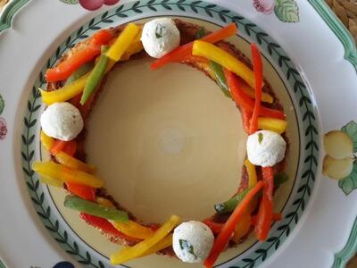 Στεφανάκι μπρουσκέτας με αρωματικά τυράκια και πιπεριές