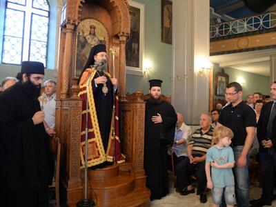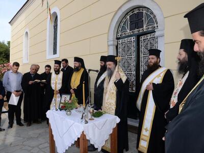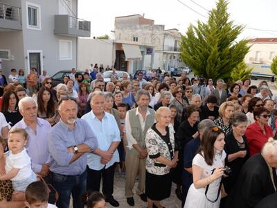 Μετά τόν Ἁγιασμό καί τόν Ἑσπερινό πού ἐτελέσθησαν μέ τήν συμμετοχή πλήθους πιστῶν, μίλησε ἀπό καρδίας ὁ Προϊστάμενος τοῦ Ἱεροῦ Ναοῦ πρωτ. π. Σωτήριος Μανωλόπουλος, ὁ ὁποῖος ἀνεφέρθη στήν ὃλη πορεία τοῦ ἒργου καί εὐχαρίστησε ἰδιαιτέρως τόν Σεβασμιώτατο γιά τήν συμπαράστασή του καί τήν στήριξη, ὡς καί ὃλους ὃσοι καθ’οἱονδήποτε τρόπον συνέλαβαν ὣστε νά περατωθοῦν οἱ ἐργασίες.