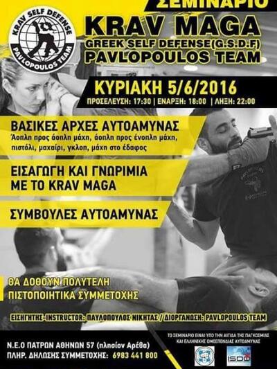Το σεμινάριο Κrav Maga απευθύνεται σε πολίτες και σώματα ασφαλείας , σε προχωρημένους και μη και τελεί υπό την αιγίδα της παγκόσμιας Ελληνικής ομοσπονδίας αυτοάμυνας.
