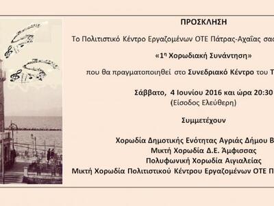 Χορωδιακή Συνάντηση διοργανώνει το Πολιτιστικό Κέντρο Εργαζομένων ΟΤΕ Πάτρας-Αχαΐας