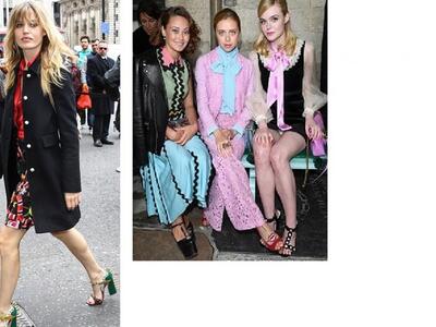 Είδαμε την αγγλική σημαία σε πουλόβερ και παπούτσια. Σκοτσέζικα καρό μαζί με αθλητικά ριγέ και στρατιωτικό βεστιάριο, παραστάσεις με κατοικίδια, εμπριμέ εγγλέζικης πορσελάνης, seventies καπέλα, αρβύλες , ροκ μποτάκια και δετές πλατφόρμες με πελώριους ριγέ πάτους, μαντήλια στο κεφάλι όπως τα φοράει η βασίλισσα, τουαλέτες τύπου Westwood, τεράστια σκουλαρίκια, άπειρα φρου-φρου γαρνιρίσματα μαζί με μεγάλες μπουτονιέρες και φιόγκους. Τα ετερόκλητα καρτουνίστικα χτενίσματα, τα μπλε κραγιόν και τα πολλά διαφορετικά γυαλιά μας ζάλισαν. Οι νέες εκδοχές της πασίγνωστης τσάντας Dionysous επίσης. Ανάμεσα στα τοπ μόντελς ήταν οι παλιές δόξες της βρετανικής μόδας Eριν Ο Κόνορ και Τζακέτα Γουίλερ.