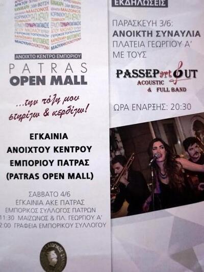 Πραγματικότητα θα αποτελεί και επισήμως από αύριο Σάββατο το Ανοικτό Κέντρο Εμπορίου της Πάτρας (Patras Open Mall ). Οι εκδηλώσεις των εγκαινίων ξεκίνησαν από απόψε με συναυλία στις 20.30 στην πλατεία Γεωργίου από το συγκρότημα Passepartout.
