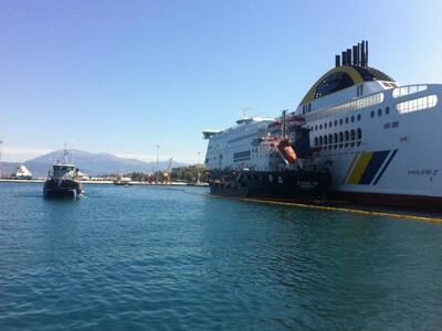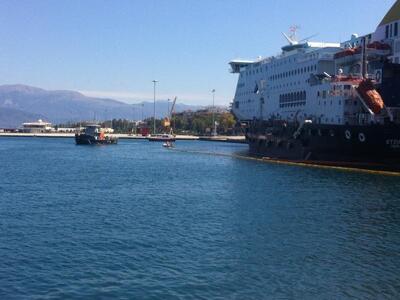 Εντυπωσιακή ήταν η άσκηση καταπολέμησης ρύπανσης που πραγματοποιήθηκε το πρωί της Δευτέρας στην προβλήτα Νο 14-15 του Βορείου Λιμένα Πάτρας μπροστά από τον επιβατηγο σταθμό "ΚΑΝΕΛΟΠΟΥΛΟΣ ΠΑΝΑΓΙΩΤΗΣ". Μάλιστα την άσκηση παρακολούθησαν μαθητές δημοτικού σχολείου της Πάτρας, που είχαν εκδηλώσει το σχετικό ενδιαφέρον.