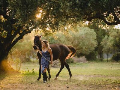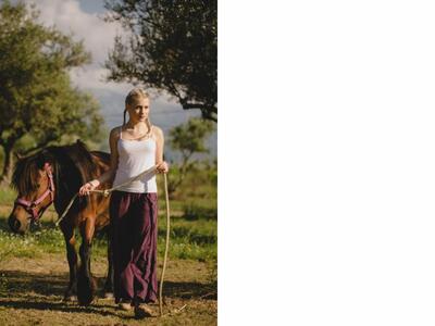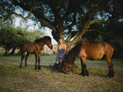 Αν και ο σκοπός της επίσκεψής μου στη γραφική φάρμα που βρίσκεται στις Κυδωνιές Φαρρών ήταν ένα επαγγελματικό photoshooting με country χαρακτήρα, η ξενάγησή μου στο χώρο από την υπεύθυνη της Σχολής Ιππασίας, Αλεξάνδρα Σακελλαρίου, από τους προπονητές και τους νεαρούς λάτρεις των αλόγων, πρόσθεσαν στην καλλιτεχνική οπτική μου πλούσιο υλικό για μία φωτογράφιση η οποία αποτυπώνει το όραμα των ιδρυτών της Σχολής «για ένα χώρο όπου οι άνθρωποι και τα ζώα θα συνυπάρχουν μαγικά», ενώ ταυτόχρονα θα μπορούσε να αποτελέσει και concept για editorial μόδας. Συνήγορος προς αυτή μου την προσέγγιση ήταν το boho ντύσιμο που είχαν επιλέξει όλοι οι παρευρισκόμενοι στη φωτογράφιση.