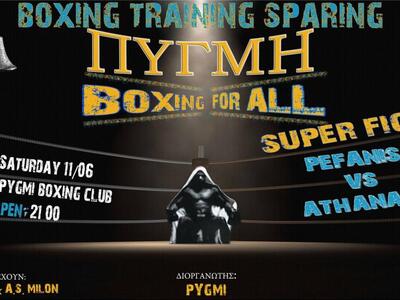 Το σπάρινγκ θα είναι ανοικτό για το κοινό, με τους φίλους της πυγμαχίας να έχουν την ευκαιρία να παρακολουθήσουν δυνατές αναμετρήσεις ισάξιων αθλητών της πόλης μας.