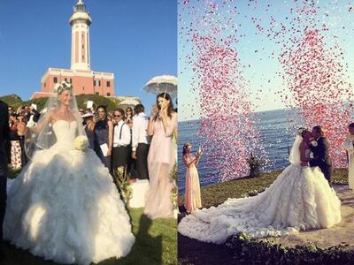 Για το «γάμο της χρονιάς» γράφουν οι ιταλικές εφημερίδες σημειώνοντας πως είχαν «κλείσει» ολόκληρες περιοχές του Κάπρι για την άφιξη των vips. Ανάμεσα στους καλεσμένους που κατέφθασαν με ελικόπτερα και γιοτ, ήταν τα ζεύγη Μπεατρίς Μπορομέο -Πιερ Κασιράγκι, Σταύρος Νιάρχος Τζέσικα Χαρτ οι σχεδιαστές Πίτερ Ντάντας, Τζαμπατίστα Βάλι, Dolce e Gabbana, Dsquared, παρούσες ήταν οι υπέρκομψες φίλες της νύφης Mπιάνκα Μπραντολίνι, Ευγενία Νιάρχος, Νατάσα Πόλυ, Σαμπίν Γκετύ ενώ η Αννα ντελο Ρούσσο ανέλαβε ρόλο παράνυφου. Oι παραμυθένιες εικόνες έκαναν το γύρω του κόσμου ταχύτατα ενώ τα σχόλια μιλούσαν για «επικό γάμο», το «ωραιότερο νυφικό για φέτος» κλπ Στο φινάλε ακόμα και φέρι μποουτ μετατράπηκαν σε ντισκοτέκ για ξεφάντωμα μέχρι τελικής πτώσης.