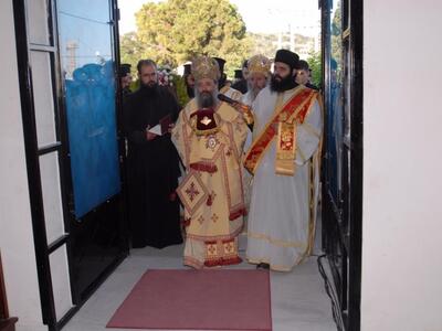 •Ἀνήμερα την Κυριακή πραγματοποιήθηκε ἡ τελετή τῶν Ἐγκαινίων καί ἐτελέσθη ἡ πρώτη Θεία Λειτουργία ἀπό τόν Σεβασμιώτατο Μητροπολίτη Πατρῶν κ.κ. Χρυσόστομο, μέ συλλειτουργό τόν Θεοφιλέστατο Ἐπίσκοπο Κερνίτσης κ. Χρύσανθο καί ἂλλους Κληρικούς τῆς Ἱερᾶς Μητροπόλεως Πατρῶν.