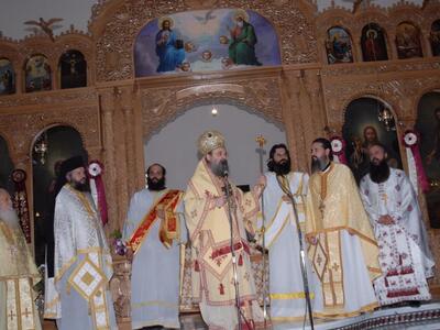 Ὁ Σεβασμιώτατος Μητροπολίτης κ.κ. Χρυσόστομος τόσο κατά τόν Ἑσπερινό, ὃσο καί μετά τήν τελετή τῶν Ἐγκαινίων ἀνεφέρθη μέ λόγια πού συγκίνησαν τό ἐκκλησίασμα: α) Στήν δοκιμασία πού ἐπέτρεψε ὁ Θεός μέσῳ τοῦ σεισμοῦ τοῦ 2008.