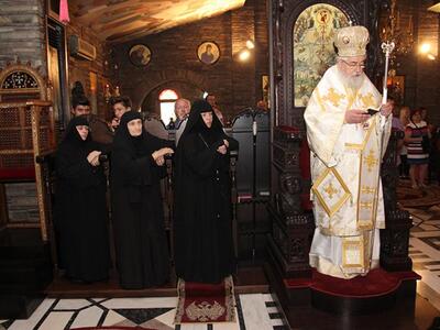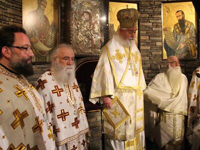 Τέλος, ευχήθηκε για την ονοματική εορτή τους, στην εορτάζουσα Καθηγουμένη της Ιεράς Μονής Αγίων Νεκταρίου και Φανουρίου Μοναχή Μόνικα και τον αδελφό και συνκτήτορα της μονής Αγίων Αυγουστίνου και Σεραφείμ και Αρχιερατικό του επίτροπο στην περιφέρεια Ευπαλίου και Ποτιδανείας, Αρχιμανδρίτη Αυγουστίνο Σύρο.