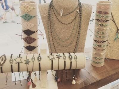 Eνα λαμπερό corner απέκτησε το κομμωτήριο της γνωστής hair stylist Φωτεινής Τσαβαλά στον πεζόδρομο της Ρήγα Φεραίου. Η όμορφη και πολύ αγαπητή εξπέρ των μαλλιών, βάλθηκε επιπλέον να στολίσει τις πελάτισσές της, παρουσιάζοντας καλοκαιρινά κοσμήματα της συμπολίτισσας Κατερίνας Καμίση. Διαλέξτε ανάμεσα σε παιχνιδιάρικα «ροζάρια», σε βραχιόλια με αστερίες, μάτια, ψαράκια, ράβδους και πλεκτούς ρόμβους αλλά και σε μενταγιόν με όστρακα.