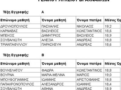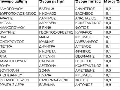 Αυτοί είναι οι πρώτοι σε βαθμολογία από το Γενικό Λύκειο Βραχναιΐκων.