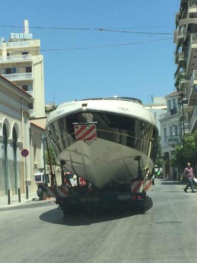 Ένα εντυπωσιακό σκάφος κέντρισε τα βλέμματα των Πατρινών, το μεσημέρι της Παρασκευής. Το πολυτελές γιοτ που μεταφερόταν οδικώς και διέσχιζε ρυμουλκούμενο, την οδό Αγίου Ανδρέου, εντόπισε ο πρώην πρόεδρος της ΝΟΔΕ Γιάννης Μάκκας και το φωτογράφησε, ανεβάζοντας τη φωτογραφία στο λογαριασμό του στο Facebook, γράφοντας τα εξής: «Ενα σκάφος στην Αγ Ανδρεου ..... Καλά ταξίδια να έχει ο Άνθρωπος !!!|