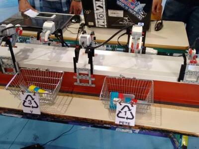 - Μια άλλη κατασκευή από το 7ο ΕΠΑΛ, που πέρυσι μας εκπροσώπησε στην Ολυμπιάδα στο Κατάρ, αποτελεί ουσιαστικά έναν χρωματικό διαλογέα πλαστικού και γυαλιού. Είναι μια πολύ καλή και αυτοματοποιημένη κατασκευή και μάλιστα το προσεχές διάστημα οι μαθητές δεσμεύτηκαν ότι θα το εξελίξουν ώστε να συνεργάζεται και με κινητό τηλέφωνο.