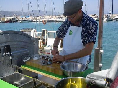 Στην Αλυκή ήρθαν το βράδυ της Κυριακής για να προετοιμαστούν για τα γυρίσματα της Δευτέρας, έχοντας τη βοήθεια του επαγγελματία ψαρά κ Κώστα Βάλβη. Το μενού είχε ψάρια που συλλέχθηκαν από ψαροκάικο και μαγειρεύτηκαν με απλό και οικονομικό τρόπο, με τις κάμερες να καταγράφουν κάθε λεπτομέρεια ώστε το ντοκιμαντέρ να προβληθεί τον ερχόμενο χειμώνα στο ORF1, δηλαδή στο πρώτο κανάλι της κρατικής τηλεόρασης της Αυστρίας.
