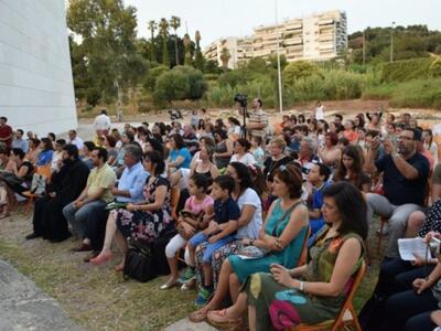 Στον αύλειο χώρο του μουσείου, σε υπαίθρια θεατρική σκηνή: