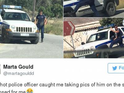 Ένας Έλληνας αστυνομικός έχει γίνει το απόλυτο viral στο Twitter, από την ώρα που μία τουρίστρια ανέβασε στον λογαριασμό της φωτογραφία του εν ώρα υπηρεσίας. Η Μάρτα Γκουλντ έκανε διακοπές στη χώρα μας, όταν είδε το αυτοκίνητο με τον όμορφο αστυνομικό και αποφάσισε να τον βγάλει φωτογραφία.