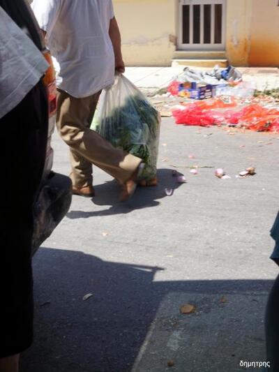 Όπως μας λένε παραγωγοί της λαϊκής σε πολλές περιπτώσεις οι άνθρωποι αυτοί είναι καθόλα αξιοπρεπείς συμπολίτες που η ένδεια τους έφερε στο σημείο να ψάχνουν ουσιαστικά, στα σκουπίδια, για να βρουν κάτι να φάνε. Μάλιστα δεν είναι λίγες οι φορές που ορισμένοι από τους μικροπωλητές του βοηθούν συνειδητά προσφέροντας τους δωρεάν φρούτα και λαχανικά σε μια κίνηση ανθρωπιάς όμως οι αναξιοπαθούντες συμπολίτες είναι τόσοι πολλοί που ορισμένοι υποχρεώνονται να ψάχνουν στα υπολείμματα, πριν περάσουν τα συνεργεία καθαρισμού του Δήμου.