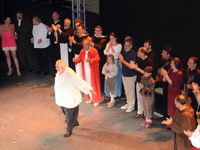 Το διάσημο έργο του Μπρεχτ με αφορμή το έργο του θρυλικού επιστήμονα-επαναστάτη και την σύγκρουσή του με την Ιερά Εξέταση σχολιάζει τα κακώς κείμενα του πολιτικοκοινωνικού κατεστημένου απέναντι στην αλήθεια, την έρευνα και τα ανήσυχα, πρωτοπόρα πνεύματα. Συντελεστές είναι πολλοί πατρινοί καλλιτέχνες και τοπική λαική μπάντα που «παρεμβαίνει» με ζωντανά τραγούδια ανάμεσα στις σκηνές. Παρά τις όποιες ενστάσεις μας πάνω στην απόδοση του «Γαλιλαίου», ομολογούμε πως ο ίδιος ο Κώστας Καζάκος με ερμηνευτικό μέτρο και φυσικότητα είναι το ισχυρό υποκριτικό «χαρτί» της όλης παραγωγής ενώ έπαιξε χθες-ακούραστος-για 65η φορά και ετοιμάζεται για μικρή τουρνέ με στάσεις σε Ζάκυνθο, Ηλιδα και Ηρώδειο. Δείτε τα στιγμιότυπα.