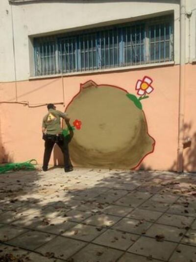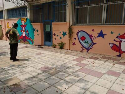 Το νέο υπέροχο γκράφιτι που κοσμεί πλέον τους τοίχους του σχολείου. Η εικόνα του Νηπιαγωγείου, όπως βλέπεται και μόνοι σας στις φωτογραφίες, άλλαξε πλήρως το διήμερο 4 και 5 Ιουλίου, καθώς, παρά την αφόρητη ζέστη, ο Λιμενικό-Γκραφιτάς Γιώργος Παπαγεωργίου έδωσε το καλύτερό του εαυτό.