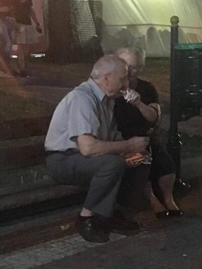 Tο βράδυ του Σαββάτου, σε ένα παγκάκι στην πλατεία του Γέρακα, κάθεται αυτό το ζευγάρι ηλικιωμένων με ένα παγωτό ξυλάκι στο χέρι. Λίγο μετά, εκείνη του δίνει να δοκιμάσει από το δικό της και αυτός απλώνει και την ταΐζει από το δικό του και γίνονται το πιο ρομαντικό κάδρο της καλοκαιρινής Αθήνας.