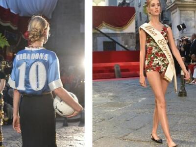 Βέβαια οι αμφιέσεις με αναφορές στη θρησκεία, το ποδόσφαιρο και τη Λόρεν έκλεψαν τα περισσότερα φλας. Miιλάμε για τη μπλούζα με το νούμερο 10 που φορούσε ο Μαραντόνα όταν έπαιζε στη Νάπολη, τις κάπες και τις τιάρες του Πάπα, αλλά και το μαγιώ με την κορδέλα Miss Eleganza που φορούσε η Λόρεν στα καλλιστεία του 1950. Εννοείται όπως πάντα τα φυσικά λουλούδια και οι χρυσές μπαρόκ γαρνιτούρες παρέλασαν με δόσεις υπερβολής.