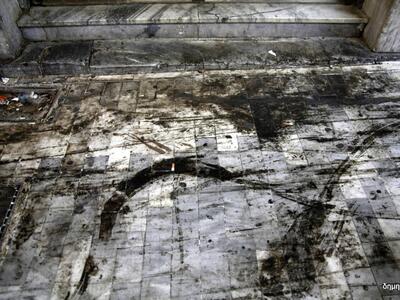Λιγο πιο κάτω, επί της Αγίου Ανδρέου, επίσης στο πεζοδρόμιο υπάρχει μια τεράστια κηλίδα απο ταγκισμένα λίπη εξίσου αποκρουστική.