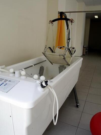 Η πισίνα όπου γίνεται υδροθεραπεία. Ο πυθμένας της είναι αυξομειούμενος, προσαρμοζόμενος στις ανάγκες κάθε ασθενή