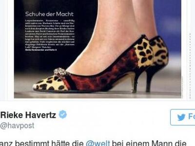 Σε πρόσφατο εξώφυλλό της η βρετανική ταμπλόιντ εφημερίδα Sun είχε παρουσιάσει μόνο το πόδι της με «τρελά» παπούτσια, κάτω από τη σόλα της ήταν όλοι οι άνδρες τους οποίους νίκησε για την πρωθυπουργία και τίτλος «Τακούνια, αγόρια!».