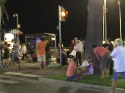 «Υπάρχουν άνθρωποι καλυμμένοι με αίμα, είναι τραυματίες», ανέφερε ένας δημοσιογράφος της εφημερίδας Nice Matin, ο οποίος βρέθηκε στο σημείο.