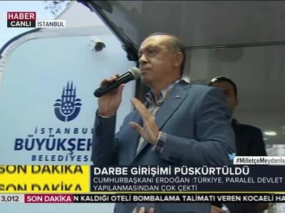 «Οι ένοπλες δυνάμεις είναι δικές μας, όχι της "παράλληλης δομής". Εγώ είμαι ο διοικητής των ενόπλων δυνάμεων» υπογράμμισε ο τούρκος πρόεδρος, αναφερόμενος στο δίκτυο του Φετουλά Γκιουλέν, τον οποίο κατηγορεί ότι υποδαύλισε το πραξικόπημα όπως και άλλες απόπειρες ανατροπής του.