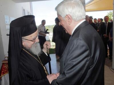 Η άφιξη του Προέδρου της Δημοκρατίας έγινε σύμφωνα με το πρόγραμμα στο Αρχαιολογικό Μουσείο Θέρμου και η εκδήλωση ξεκίνησε με την τέλεση Αγιασμού από τον Σεβασμιώτατο Μητροπολίτη Ακαρνανίας και Αιτωλίας κ.Κοσμά.