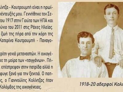 Ιδιαίτερα συγκινητική είναι η διήγηση της Κατερίνας Κουτρουμπή σχετικά με τη μητέρα της Σοφία Κολίντζα, η οποία ήταν κι εκείνη μετανάστρια στην Αμερική. Έχοντας χάσει πατέρα και αδερφό και μην έχοντας ούτε σπίτι να μείνει, λόγω των καταστροφών του πολέμου, η νεαρή τότε Σοφία αποφάσισε να φύγει με τα αδέρφια της από τη χώρα και να πάει στους θείους της στην Αμερική. Το ταξίδι, όπως αναφέρει χαρακτηριστικά η κόρη της, ήταν πάρα πολύ δύσκολο. «Έφυγε με ένα παλιό ιταλικό σαπιοκάραβο, από την Πάτρα. Μόνο προσευχές άκουγε σε όλο το ταξίδι. Τους έβαλαν στο αμπάρι, μαζί με τα ζώα. Μερικά από αυτά πέθαναν, όπως και μερικοί άνθρωποι. Οι λίγες ημέρες τους φάνηκαν αιώνες. Πέρασαν μεγάλη ταλαιπωρία»....