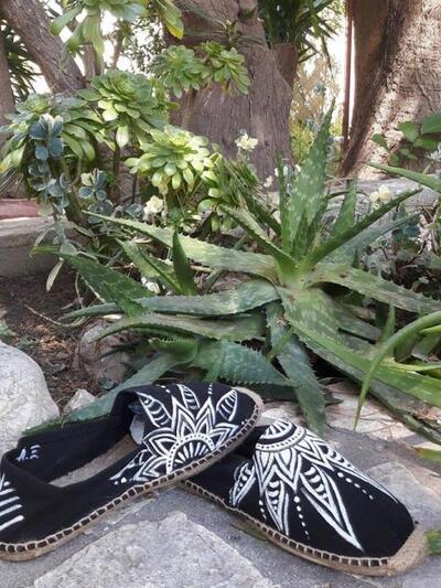 Τα παπούτσια προέκυψαν από την στιγμή που άρχισα να ζωγραφίζω πάνω σε ύφασμα. Πρώτα ερασιτεχνικά. Στην συνέχεια ήρθαν οι εσπαντρίγιες οι οποίες μου άρεσαν. Υπήρξαν κάποιοι φίλοι που είχαν μαγαζιά, τους άρεσε η ιδέα και το αποτέλεσμα κι έτσι υποστήριξαν αυτή την προσπάθεια.