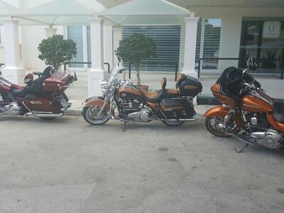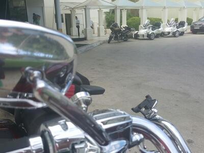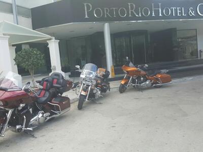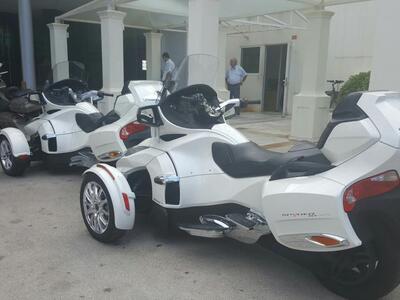 Τα τρίκυκλα μάρκας CAN AM ήταν σταθμευμένα δίπλα σε 4 μηχανές τύπου Harley Davindson. Η παρέα Ρώσων και Κύπριων έφερε τα οχήματά της με νταλίκα ως τη Βουλγαρία και οδήγησαν -με ενδιάμεσους σταθμούς- ως την Πάτρα, ενώ το ταξίδι τους θα συνεχιστεί.