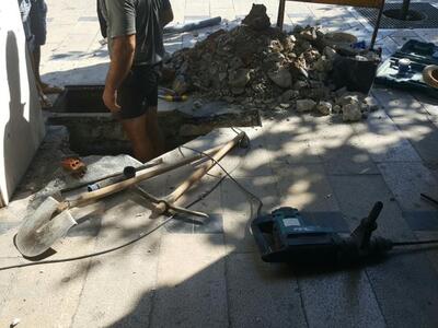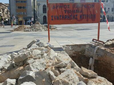 Και το πρωί της Παρασκευής 22 Ιουλίου τα συνεργεία του δήμου Πατρέων ήταν πάλι εκεί. Να σπάνε το πλακόστρωτο, να σκάβουν, να αναζητούν τις δαιδαλώδεις σωληνώσεις που έχουν περαστεί "όπως να 'ναι" σύμφωνα με τα λεγόμενα των ίδιων των εργαζομένων στον δήμο και να αντικαθιστούν τα -περιέργως σπασμένα πλαστικά-συνθετικά τμήματα σωληνώσεων του δικτύου ύδρευσης κάτω από την πλατεία.