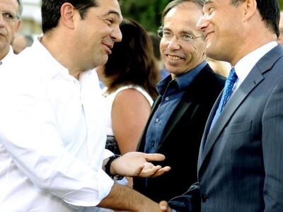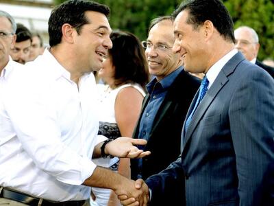 Θερμή χειραψία με τον αντιπρόεδρο της ΝΔ Άδωνη Γεωργιάδη, είχε ο πρωθυπουργός Αλέξης Τσίπρας στη διάρκεια της επίσκεψης του στον Άγιο Δημήτριο για την εκδήλωση για την παραχώρηση της έκτασης του Ασυρμάτου στο δήμο, το βράδυ της Παρασκευής.