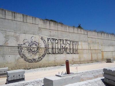 Ένα περίτεχνο...γράφιτι έχουν δημιουργήσει άγνωστοι το τελευταίο διάστημα στο μεγάλο τοιχείο της μίνι περιμετρικής λίγο μετά τα αρχαία στα Ταμπάχανα. Το σχέδιο με τον μαύρο κύκλο έχει συγκεντρώσει το ενδιαφέρον των περιοίκων κυρίως γιατί κανείς δνε μπορεί να πει με βεβαιότητα τι συμβολίζει αλλά και για το πόση ώρα μπορεί να χρειάστηκε ο ...δημιουργός του για να το ζωγραφίσει.