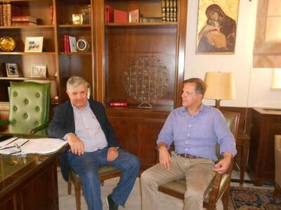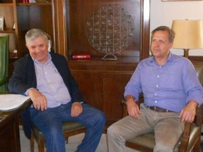 Συνάντηση του Δημάρχου Πύργου κ. Γαβρίλη Λιατσή με τον Αντιπεριφερειάρχη Ηλείας κ. Γεώργιο Γεωργιόπουλο στα πλαίσια του συμφώνου συνεργασίας μεταξύ Περιφέρειας και Δήμων Πύργου και Αρχαίας Ολυμπίας για την Ολοκληρωμένη Χωρική Παρέμβαση (ΟΧΕ) στην ευρύτερη περιοχή του άξονα Κατάκολο- Αρχαία Ολυμπία.