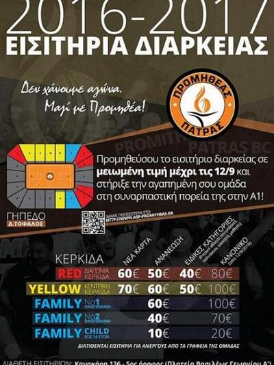 "Στην πιο λαμπρή στιγμή της ομάδας μας, σε θέλουμε στο πλευρό μας! Η παρθενική συμμετοχή μας στην Basket League είναι το πρώτο βήμα για την καθιέρωση του Προμηθέα στους μεγάλους του ελληνικού basket. Καλούμε τον φίλαθλο κόσμο της Πάτρας που έχει αγκαλιάσει με απίστευτη αγάπη και πίστη τον Προμηθέα να στηρίξει και αυτή τη νέα προσπάθεια, όπως κάνει εδώ και χρόνια.