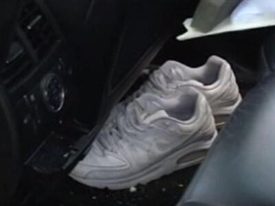 Στο πάτωμα υπάρχει επίσης ένα ζευγάρι αθλητικά παπούτσια που πιθανόν να ανήκουν στην κοπέλα που καθόταν σε εκείνο το σημείο.