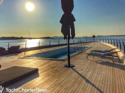 To 81 μέτρων γιοτ μπορεί να φιλοξενήσει έως και 12 άτομα στις 7 καμπίνες του. Το εσωτερικό του όπως κανείς μπορεί να υποθέσει και βλέποντάς το απλά απέξω, είναι πολυτελές, κομψό και άνετο και έπιπλα χλιδάτα μεν, διαχρονικού στιλ δε.