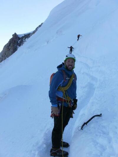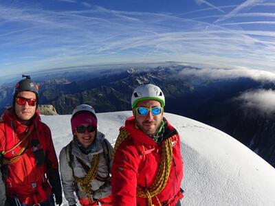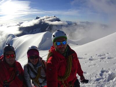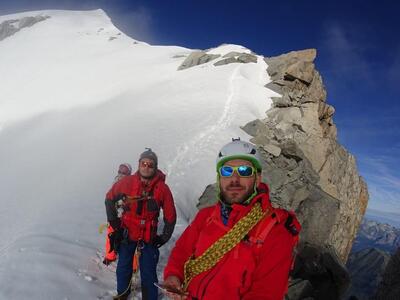 Και πλέον η κορυφή ήταν για εμάς Νο1 στόχος! Μέσα σε αυτές τις μέρες που ακολούθησαν στις Άλπεις είχαμε σοβαρά θέματα να αντιμετωπίσουμε, όπως χιονοστιβάδες, αρκετές διασώσεις σε άλλους ορειβάτες λόγω καιρικών συνθηκών και δυστυχώς προχθές, την μέρα της ύστατης προσπάθειάς μας προς την κορυφή, σκοτώθηκε μπροστά μας ένας οδηγός βουνού από την Γαλλία, από μια κατολίσθηση πέτρας (μεγέθους ενός αυτοκινήτου),τραυματίζοντας σοβαρά άλλους 3! Η ψυχολογία μας βρέθηκε στα Τάρταρα...