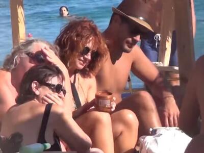 Ο φακός του Mykonos Live TV, απαθανάτισε την Ελεωνόρα Ζουγανέλη με τον σύντροφό της, στην παραλία της Αγίας Άννας να χαλαρώνουνε και να περνούν ξέγνοιαστες στιγμές.