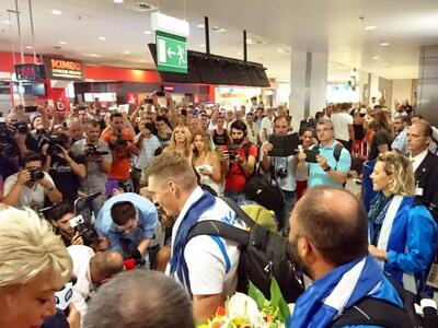 Ωστόσο, η υποδοχή που του επιφύλαξαν φίλοι, δημοσιογράφοι και συναθλητές του ήταν ιδιαίτερα θερμή, με τον ίδιο να δηλώνει ότι ένιωσε υπέροχα με τον τρόπο που τον υποδέχτηκαν.
