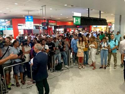 Με μια υποδοχή που δεν θύμιζε καθόλου την αντίστοιχη υποδοχή που έγινε στην Άννα Κορακάκη με τιμές αρχηγού κράτους, ο Σπύρος Γιαννιώτης έφτασε στο αεροδρόμιο της Αθήνας στις 12:00 το μεσημέρι της Πέμπτης. Ο αργυρός Ολυμπιονίκης του Ρίο βρέθηκε στην αίθουσα αφίξεων, συνοδευόμενος από τον προπονητή του Νίκο Γέμελο και την συναθλήτριά του, Κέλλυ Αραούζου που κατετάγη 11η, έχοντας τυλιγμένη στο λαιμό του μία ελληνική σημαία.